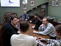 Встреча-беседа «Научное знание и вера в Бога» Встреча настоятеля церкви Ризоположения Пресвятой Богородицы в Леонове и старшим преподавателем СДА протоиереем Андреем Рахновским с учащимися школ Дзержинска, которая прошла 8 апреля 2025 г. в Сретенской духовной академии в рамках совместного Просветительского проекта с Финансовым университетом.